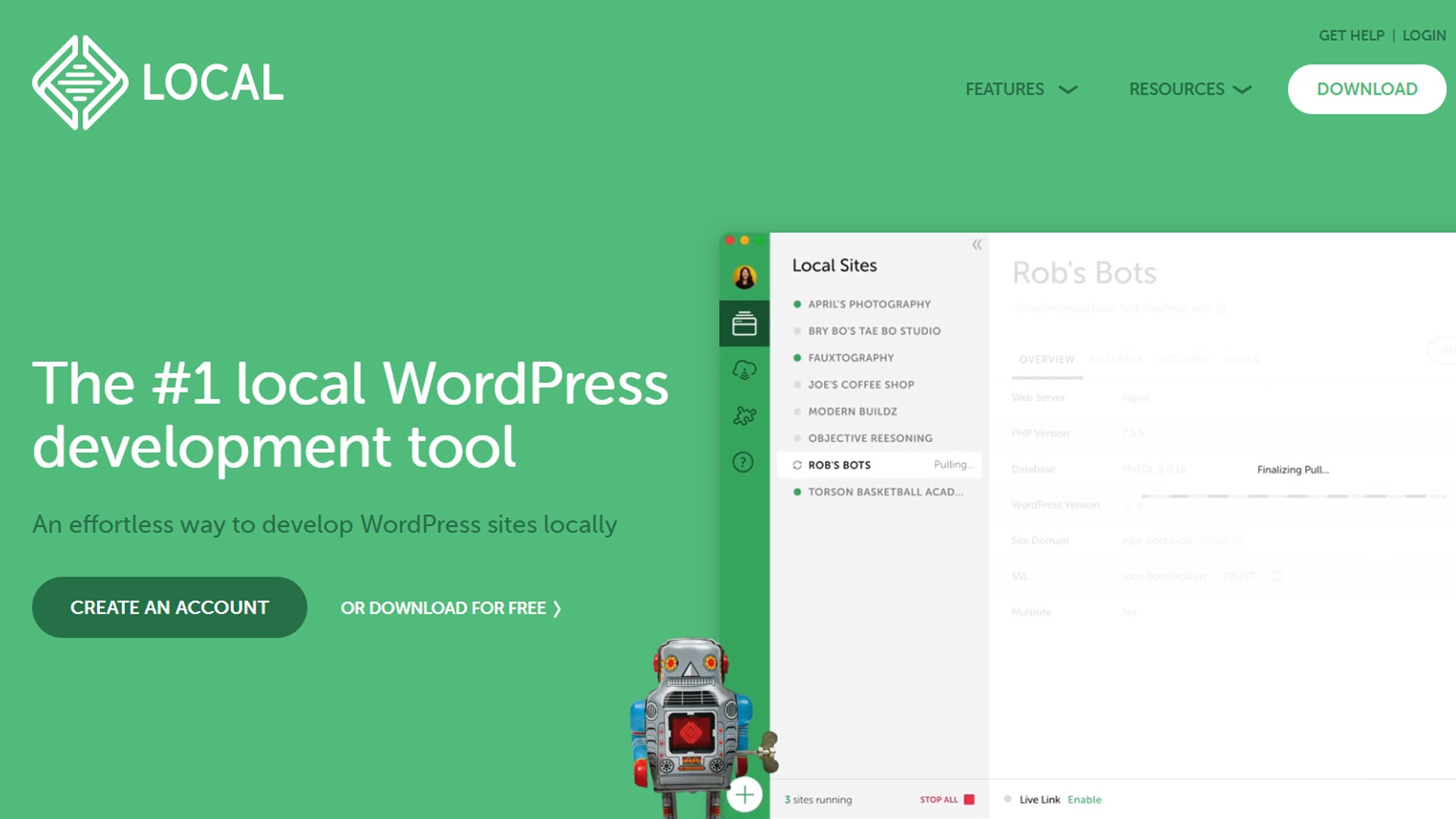 XAMPP」・「MAMP」・「LOCAL」が有名ですが、Windows・MacOCの両方に対応&自分でデータベース接続設定不要という点でオススメなのは、「LOCAL」です。